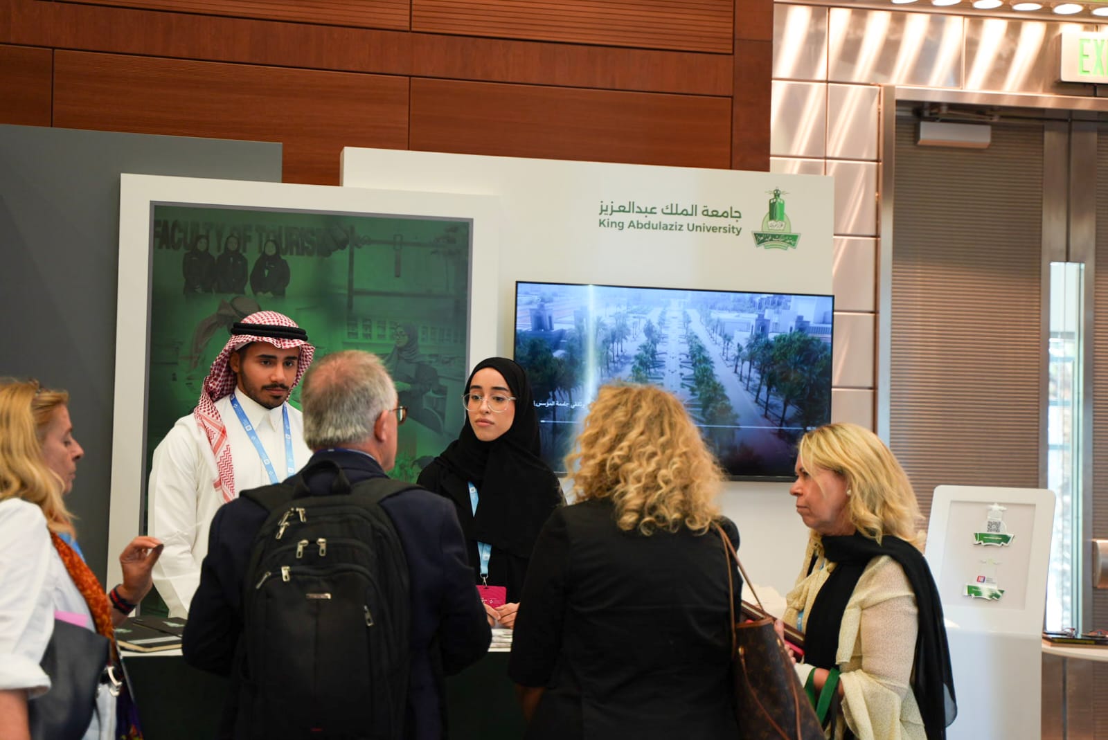 استعرض جناح الجامعة أحدث منجزاتها وأبحاثها العلمية الداعمة للتنمية الوطنية ومثل الجامعة سفراؤها الطلاب، وهم وليد أبو الحسن من كلية الهندسة، وفادية عشماوي، من كلية الحاسبات وتقنية المعلومات، وعبدالله القرني، من كلية علوم الأرض، وتأكد الجامعة حرصها على تمكين طلابها، واشراكهم وتفعيل دورهم في تمثيل الجامعة وعرض المخرجات الأكاديمية على الساحة العالمية، مما يعكس جودة التعليم وتأثيره.
